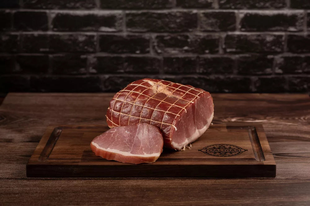 đđș KarĂĄcsonyi TĂłalmĂĄsi felezett fĂŒstölt kötözött sonka 1db (ca 0.6-0.7kg) /TĂłalmĂĄsi rökt Jul skinka, halv, 1 st (ca 0.6-0.7 kg)